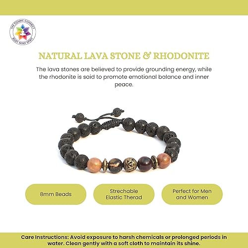 Healing Lava Stone and Rhodonite Threaded Bracelet Stress Relief